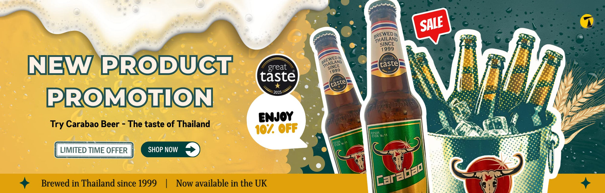 View full detailsBrand: CarabaoIngredients: Water, Malted Barley, Hops Allergy Advice: Contains Barley. Alc. Vol: 4.9%Product of Thailand Weight Volume: 320mlShippi...