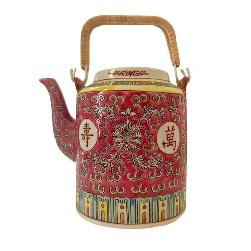Oriental Red Pattern Tall Teapot with Bamboo Handle