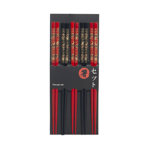 Japanese Black & Red Patterned Chopsticks - 5 Pairs
