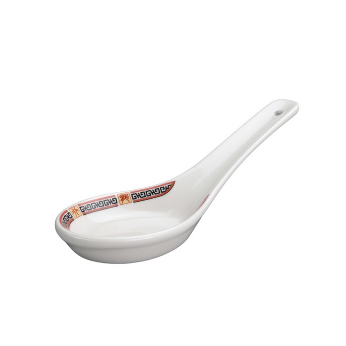 Durable China soup spoon in Chinese Dragon design. Commonly used for eating soup, rice or noodles, these oriental soup spoons can also be used with chopsticks to make eating noodles easier. The spoons can stand unaided allowing them to be used for canapés or for serving oriental condiments. Dimensions: Length: 13.5cm. Food contact safe.